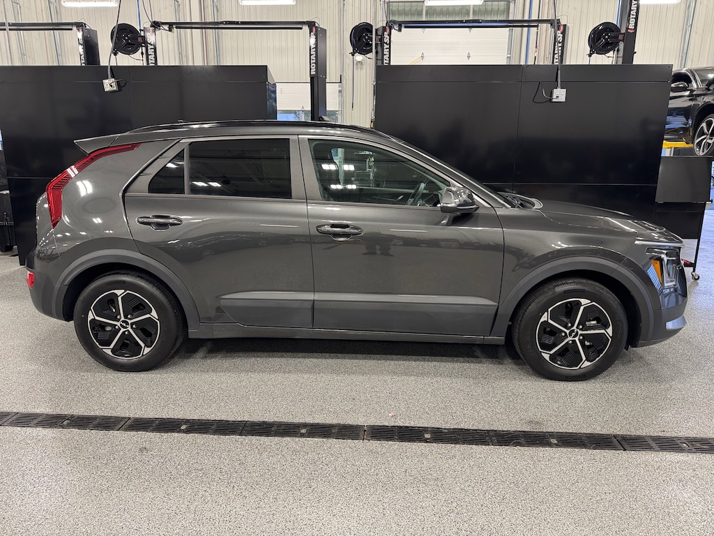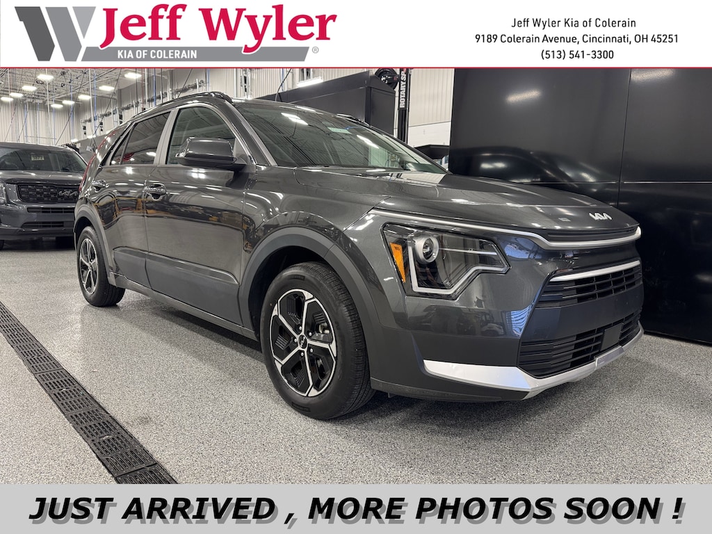 Jeff Wyler Kia of Colerain is very proud to offer this charming-looking 2023 Kia Niro EX in Graphite Gray. 4-Wheel Disc Brakes, 4.438 Axle Ratio, 6 Speakers, ABS brakes, Air Conditioning, Alloy wheels, AM/FM radio: SiriusXM, Apple CarPlay & Android Auto, Auto High-beam Headlights, Automatic temperature control, Brake assist, Bumpers: body-color, Carpet Floor Mats, Cloth & Vegan Leather-Trimmed Seats, Delay-off headlights, Driver door bin, Driver vanity mirror, Dual front impact airbags, Dual front side impact airbags, Electronic Stability Control, Emergency communication system: Kia Connect (includes 1 year free trial), Exterior Parking Camera Rear, Four wheel independent suspension, Front anti-roll bar, Front Bucket Seats, Front Center Armrest, Front dual zone A/C, Front reading lights, Fully automatic headlights, Heated door mirrors, Heated Front Bucket Seats, Heated front seats, Illuminated entry, Knee airbag, Leather Shift Knob, Low tire pressure warning, Navigation System, Occupant sensing airbag, Outside temperature display, Overhead airbag, Overhead console, Panic alarm, Passenger door bin, Passenger vanity mirror, Power door mirrors, Power driver seat, Power steering, Power windows, Radio: AM/FM/HD/SiriusXM, Rain sensing wipers, Rear anti-roll bar, Rear seat center armrest, Rear window defroster, Rear window wiper, Remote keyless entry, Security system, Smart Key w/ Push Button and Remote Start, Speed control, Speed-sensing steering, Split folding rear seat, Spoiler, Steering wheel mounted audio controls, Telescoping steering wheel, Tilt steering wheel, Traction control, Trip computer, Turn signal indicator mirrors, Variably intermittent wipers, and Wheels: 16" Alloy Aero Our PRE-OWNED vehicles are put through a rigorous 167- POINT QUALITY ASSURANCE INSPECTION along with an average amount of over $1,400.00 SPENT to recondition each vehicle so we can be sure to deliver you the highest quality vehicle like you deserve! ***ONLINE PRICE DOES NOT INCLUDE WYLER FAMILY FIRST PACKAGE***
