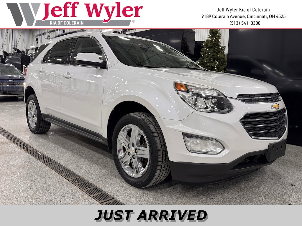 Jeff Wyler Kia of Colerain is pleased to offer this charming-looking 2016 Chevrolet Equinox LT in Iridescent Pearl Tricoat. Convenience Package (8-Way Power Driver Seat Adjuster, Air Conditioning w/Automatic Climate Control, Heated Driver & Front Passenger Seats, Leather-Wrapped Steering Wheel w/Audio/Cruise Ctrls, and Remote Vehicle Starter System), Equipment Group 1LT (6 Speaker Audio System Feature, Bluetooth® For Phone, and Manual Climate Control), Sun, Sound & Navigation Package (Power Tilt-Sliding Sunroof w/Express-Open), Technology Package (Pioneer Premium Audio System Feature, Radio: Chevrolet MyLink Audio System w/Navigation, and SiriusXM Satellite Radio), 17" Aluminum Wheels, 18" Chrome-Clad Aluminum Wheels, 3.23 Axle Ratio, 4-Wheel Disc Brakes, 6 Speakers, ABS brakes, Air Conditioning, Alloy wheels, AM/FM radio: SiriusXM, Black Roof Rack Cross Bars, Brake assist, Bumpers: body-color, Cargo Area Close-Out Panel (LPO), Compass, Delay-off headlights, Deluxe Front Bucket Seats, Driver door bin, Driver vanity mirror, Dual front impact airbags, Dual front side impact airbags, E10 Fuel Capable, E85 FlexFuel Capable, Electronic Stability Control, Emergency communication system: OnStar Guidance, Exterior Parking Camera Rear, Four wheel independent suspension, Front anti-roll bar, Front Bucket Seats, Front Center Armrest, Front License Plate Bracket, Front reading lights, Fully automatic headlights, Heated door mirrors, Illuminated Door Sill Plates, Illuminated entry, Low tire pressure warning, Occupant sensing airbag, Outside temperature display, Overhead airbag, Panic alarm, Passenger door bin, Passenger vanity mirror, Power door mirrors, Power driver seat, Power Programmable Rear Liftgate, Power steering, Power windows, Premium audio system: Chevrolet MyLink, Premium Cloth Seat Trim, Radio data system, Radio: Chevrolet MyLink Audio System, Rear anti-roll bar, Rear seat center armrest, Rear window defroster, Rear window wiper, Remote keyless entry, Roof rack: rails only, Security system, Speed control, Speed-sensing steering, Split folding rear seat, Spoiler, Steering wheel mounted audio controls, Tachometer, Telescoping steering wheel, Tilt steering wheel, Traction control, Trip computer, Universal Home Remote, and Variably intermittent wipers Our PRE-OWNED vehicles are put through a rigorous 167- POINT QUALITY ASSURANCE INSPECTION along with an average amount of over $1,400.00 SPENT to recondition each vehicle so we can be sure to deliver you the highest quality vehicle like you deserve! ***ONLINE PRICE DOES NOT INCLUDE WYLER FAMILY FIRST PACKAGE***