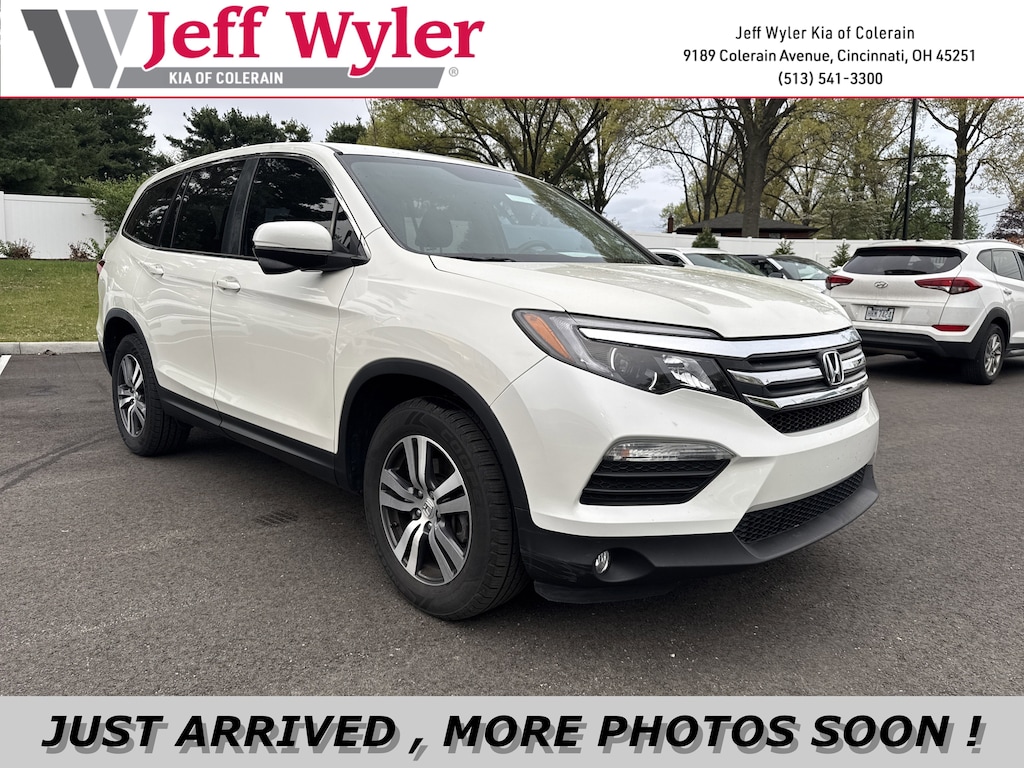 Jeff Wyler Kia of Colerain is proud to offer this handsome-looking 2018 Honda Pilot EX in White Diamond Pearl. 18" Alloy Wheels, 3rd row seats: split-bench, 4-Wheel Disc Brakes, 4.25 Axle Ratio, 7 Speakers, ABS brakes, Air Conditioning, Alloy wheels, AM/FM radio: SiriusXM, Apple CarPlay/Android Auto, Automatic temperature control, Brake assist, Bumpers: body-color, Cloth Seat Trim, Compass, Delay-off headlights, Driver door bin, Driver vanity mirror, Dual front impact airbags, Dual front side impact airbags, Electronic Stability Control, Exterior Parking Camera Rear, Four wheel independent suspension, Front anti-roll bar, Front Bucket Seats, Front Center Armrest, Front dual zone A/C, Front fog lights, Front reading lights, Fully automatic headlights, Garage door transmitter: HomeLink, Illuminated entry, Low tire pressure warning, Occupant sensing airbag, Outside temperature display, Overhead airbag, Overhead console, Panic alarm, Passenger door bin, Passenger vanity mirror, Power door mirrors, Power driver seat, Power steering, Power windows, Radio data system, Radio: AM/FM Audio System, Rear air conditioning, Rear anti-roll bar, Rear reading lights, Rear seat center armrest, Rear window defroster, Rear window wiper, Remote keyless entry, Security system, SiriusXM Radio, Speed control, Speed-sensing steering, Speed-Sensitive Wipers, Split folding rear seat, Spoiler, Steering wheel mounted audio controls, Tachometer, Telescoping steering wheel, Tilt steering wheel, Traction control, Trip computer, and Variably intermittent wipers Our PRE-OWNED vehicles are put through a rigorous 167- POINT QUALITY ASSURANCE INSPECTION along with an average amount of over $1,400.00 SPENT to recondition each vehicle so we can be sure to deliver you the highest quality vehicle like you deserve! ***ONLINE PRICE DOES NOT INCLUDE WYLER FAMILY FIRST PACKAGE***