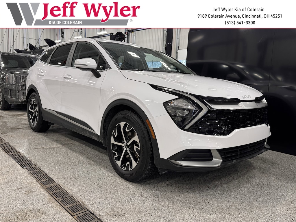 Jeff Wyler Kia of Colerain is excited to offer this wonderful-looking 2023 Kia Sportage EX in Glacial White Pearl. 4-Wheel Disc Brakes, 6 Speakers, ABS brakes, Air Conditioning, Alloy wheels, AM/FM radio: SiriusXM, Apple CarPlay & Android Auto, Auto High-beam Headlights, Automatic temperature control, Axle Ratio: 3.648, Brake assist, Bumpers: body-color, Carpeted Floor Mats, Compass, Delay-off headlights, Driver door bin, Driver vanity mirror, Dual front impact airbags, Dual front side impact airbags, Electronic Stability Control, Emergency communication system, Four wheel independent suspension, Front anti-roll bar, Front Bucket Seats, Front Center Armrest, Front dual zone A/C, Fully automatic headlights, Heated door mirrors, Heated Front Bucket Seats, Heated front seats, Illuminated entry, Leather Shift Knob, Leather steering wheel, Leatherette Seat Trim, Low tire pressure warning, Mud Guards, Navigation System, Occupant sensing airbag, Outside temperature display, Overhead airbag, Overhead console, Panic alarm, Passenger door bin, Passenger vanity mirror, Power door mirrors, Power driver seat, Power steering, Power windows, Radio: AM/FM/HD Audio System, Rain sensing wipers, Rear anti-roll bar, Rear seat center armrest, Rear window defroster, Rear window wiper, Remote keyless entry, Security system, Speed control, Speed-sensing steering, Split folding rear seat, Spoiler, Steering wheel mounted audio controls, Tachometer, Telescoping steering wheel, Tilt steering wheel, Traction control, Trip computer, Turn signal indicator mirrors, Variably intermittent wipers, and Wheels: 18" Machine Finish Alloy Our PRE-OWNED vehicles are put through a rigorous 167- POINT QUALITY ASSURANCE INSPECTION along with an average amount of over $1,400.00 SPENT to recondition each vehicle so we can be sure to deliver you the highest quality vehicle like you deserve! ***ONLINE PRICE DOES NOT INCLUDE WYLER FAMILY FIRST PACKAGE***