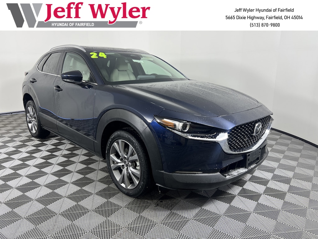 CARFAX One-Owner. Clean CARFAX. Jeff Wyler Hyundai of Fairfield is very proud to offer this beautiful 2024 Mazda CX-30 2.5 S Preferred Package in Deep Crystal Blue Mica. Well equipped with: Android Auto, Apple CarPlay, CALL NOW FOR YOUR VIP APPOINTMENT 513-870-9800, FULLY SERVICED w/RECORDS, GUARANTEED FINANCING!! NO MATTER YOUR SITUATION WE CAN GET AN APPROVAL!!, THE #1 Volume dealer in the region! Come see why for yourself Today!!, WE PAY MORE FOR YOUR TRADE!!, 4-Wheel Disc Brakes, 6 Speakers, ABS brakes, Air Conditioning, Alloy wheels, AM/FM radio, AppLink/Apple CarPlay and Android Auto, Auto High-beam Headlights, Automatic temperature control, Brake assist, Bumpers: body-color, Compass, Delay-off headlights, Driver door bin, Driver vanity mirror, Dual front impact airbags, Dual front side impact airbags, Electronic Stability Control, Emergency communication system: Mazda Connected Services (3-year complimentary trial included), Exterior Parking Camera Rear, Front anti-roll bar, Front Bucket Seats, Front Center Armrest, Front dual zone A/C, Front reading lights, Front wheel independent suspension, Fully automatic headlights, Heated door mirrors, Heated Front Bucket Seats, Heated front seats, Illuminated entry, Knee airbag, Leather Shift Knob, Leather steering wheel, Leatherette Seat Trim, Low tire pressure warning, MAZDA CONNECT Infotainment System, Memory seat, Occupant sensing airbag, Outside temperature display, Overhead airbag, Overhead console, Panic alarm, Passenger door bin, Passenger vanity mirror, Power door mirrors, Power driver seat, Power moonroof, Power steering, Power windows, Radio data system, Radio: AM/FM Audio System, Rain sensing wipers, Rear seat center armrest, Rear side impact airbag, Rear window defroster, Rear window wiper, Remote keyless entry, Speed control, Speed-sensing steering, Split folding rear seat, Spoiler, Steering wheel mounted audio controls, Tachometer, Telescoping steering wheel, Tilt steering wheel, Traction control, Trip computer, Turn signal indicator mirrors, Variably intermittent wipers, and Wheels: 18" x 7J Aluminum Alloy. TO CHECK ON THE AVAILABILITY OF THIS VEHICLE REACH OUT TO ONE OF OUR TEAM MEMBERS!! ALSO SHOP ONLINE AT https://www.jeffwylerhyundaioffairfield.com/ Proudly Serving: Cincinnati, Dayton, Columbus, Louisville, Lexington, Indianapolis, Hamilton, Florence, Alexandria, Beavercreek, Springdale, West Chester, Monroe, Fairfield, Kenwood, Newport and all of greater Cincinnati Ohio, Indiana, and Northern Kentucky.