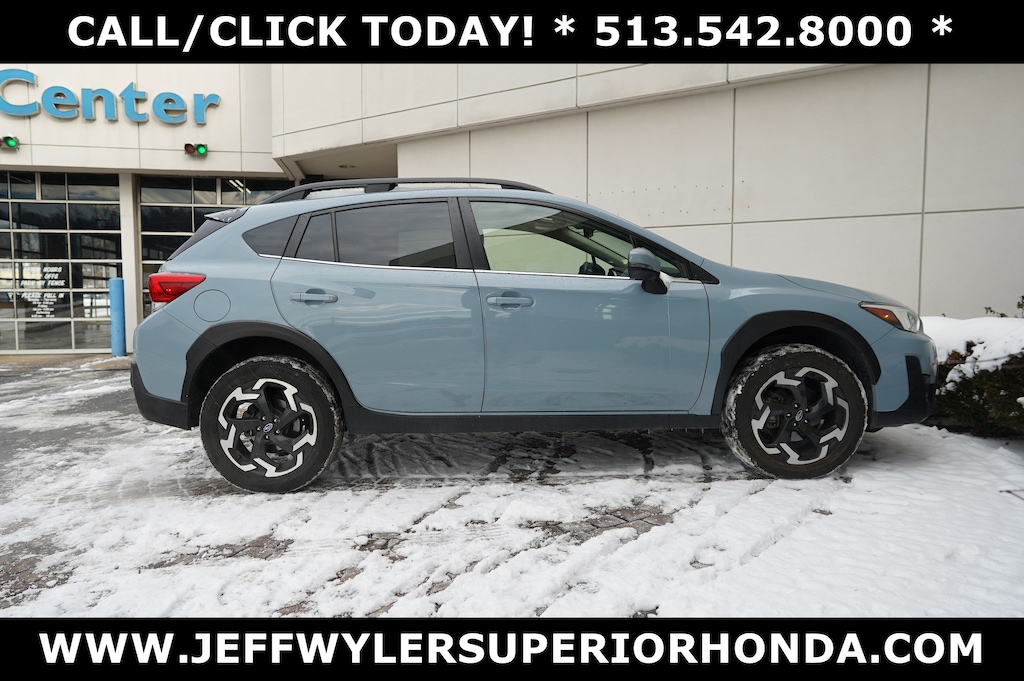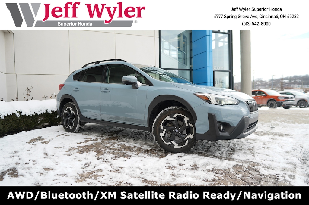 Jeff Wyler Superior Honda is pleased to offer this superb-looking 2023 Subaru Crosstrek Limited in Cool-Gray Khaki. BLUETOOTH, MOONROOF SUNROOF, RECENT SUPERIOR TRADE, ONE OWNER, Apple CarPlay, and Android Auto Moonroof & Navigation & harman/kardon Audio (harman/kardon Speaker System, Power Moonroof, and Radio: Subaru STARLINK 8.0" Multimedia Nav System), Crosstrek Limited, 4D Sport Utility, 2.5L 4-Cylinder DOHC 16V, Lineartronic CVT, AWD, Cool-Gray Khaki, Black W/Orange Stitching Leather, 3.70 Axle Ratio, 4-Wheel Disc Brakes, 6 Speakers, ABS brakes, Air Conditioning, All-Weather Floor Liners, Alloy wheels, AM/FM radio: SiriusXM, Anti-whiplash front head restraints, Auto High-beam Headlights, Auto-Dimming Mirror w/Compass & HomeLink, Automatic temperature control, Brake assist, Bumpers: body-color, CD player, Cool Gray Khaki Door Edge Guards, Driver door bin, Driver vanity mirror, Dual front impact airbags, Dual front side impact airbags, Electronic Stability Control, Emergency communication system: STARLINK Safety and Security (Subscription Required), Exterior Parking Cameras, Four wheel independent suspension, Front anti-roll bar, Front Bucket Seats, Front Center Armrest, Front fog lights, Front reading lights, Fully automatic headlights, Heated door mirrors, Heated Front Bucket Seats, Heated front seats, Illuminated entry, Knee airbag, Leather-Trimmed Upholstery, Low tire pressure warning, Map & Dome Lights LED Upgrade, Occupant sensing airbag, Outside temperature display, Overhead airbag, Overhead console, Panic alarm, Passenger door bin, Passenger vanity mirror, Power door mirrors, Power driver seat, Power steering, Power windows, Radio data system, Radio: Subaru STARLINK 8.0" Multimedia Plus System, Rear anti-roll bar, Rear Bumper Cover, Rear seat center armrest, Rear window defroster, Rear window wiper, Remote keyless entry, Security system, Speed control, Speed-sensing steering, Split folding rear seat, Spoiler, STARLINK/Apple CarPlay/Android Auto, Steering wheel mounted audio controls, Sunshade - Windshield, Tachometer, Telescoping steering wheel, Tilt steering wheel, Traction control, Trip computer, Turn signal indicator mirrors, Variably intermittent wipers, and Wheels: 18" x 7.0J Alum Alloy Blk w/Machine Finish Our PRE-OWNED vehicles are put through a rigorous 167- POINT QUALITY ASSURANCE INSPECTION along with an average amount of over $1,400.00 SPENT to recondition each vehicle so we can be sure to deliver you the highest quality vehicle like you deserve! ***ONLINE PRICE DOES NOT INCLUDE WYLER FAMILY FIRST PACKAGE*** Stop by 4777 Spring Grove Ave. Road to see for yourself, or give us a call @ 283-209-1858 to schedule your test drive!