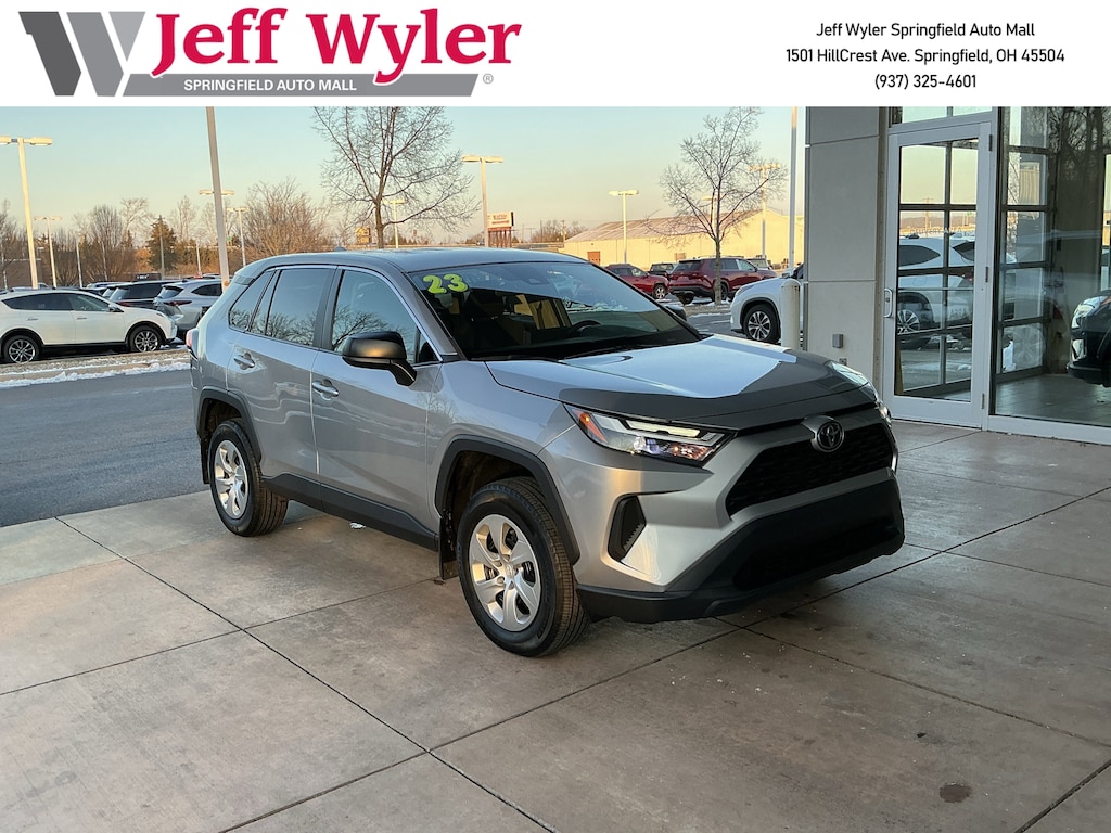 Jeff Wyler Springfield Auto Mall is very proud to offer this good-looking 2023 Toyota RAV4 LE in Silver. Well equipped with: 17" Steel Wheels, 4-Wheel Disc Brakes, 6 Speakers, ABS brakes, Air Conditioning, AM/FM radio: SiriusXM, Auto High-beam Headlights, Axle Ratio: 3.177, Brake assist, Bumpers: body-color, Driver door bin, Driver vanity mirror, Dual front impact airbags, Dual front side impact airbags, Electronic Stability Control, Emergency communication system: Safety Connect (10-year trial), Exterior Parking Camera Rear, Fabric Seat Trim, Four wheel independent suspension, Front anti-roll bar, Front Bucket Seats, Front Center Armrest, Front reading lights, Illuminated entry, Knee airbag, Low tire pressure warning, Occupant sensing airbag, Outside temperature display, Overhead airbag, Overhead console, Panic alarm, Passenger door bin, Passenger vanity mirror, Power door mirrors, Power steering, Power windows, Radio data system, Radio: AM/FM/XM Audio System, Rear anti-roll bar, Rear seat center armrest, Rear window defroster, Rear window wiper, Remote keyless entry, Speed control, Speed-sensing steering, Split folding rear seat, Spoiler, Steering wheel mounted audio controls, Tachometer, Telescoping steering wheel, Tilt steering wheel, Traction control, and Trip computer. Ask about available certifications. Used vehicles 10 years of age or newer with less than 100,000 miles are eligible for the Wyler Assurance Program, but eligible vehicles must pass our reconditioning process and multi-point inspection. Provided the vehicle passes inspection, vehicles will be eligible for the 6 month/6,000 mile limited warranty. The 6 month/6,000 mile limited warranty is NOT available on AS-IS vehicles, wholesale vehicles, lease buyback/pass-thru vehicles or un-inspected vehicles. Note that this program can also apply to vehicles where the remaining factory coverage is less than 6 months or 6,000 miles. Please check the Federal Trade Commission (FTC) Buyers guide on the vehicle for full details as to whether or not warranty coverage may apply. Contact Dealer for additional details. The Wyler Assurance 6 month/6,000 Mile limited warranty ends 6 months from the date of the Retail Purchase Agreement (BUYERS ORDER) or when the vehicle's odometer registers 6,000 additional miles to the mileage listed on the BUYERS ORDER, whichever comes first. Your Deductible - The warranty holder on your contract pays the first $100 of each covered repair.
